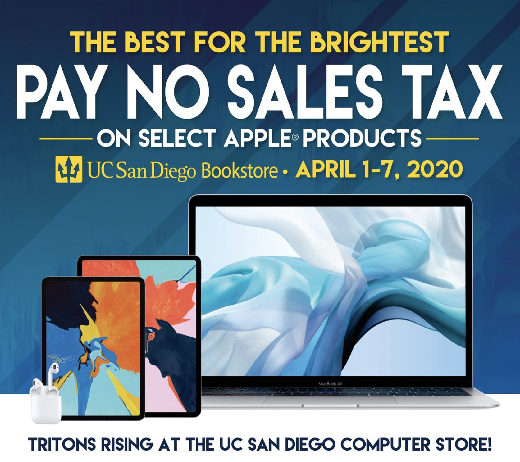 Uc San Diego Bookstore On Twitter Today Is Our Last Day Of The Pay No Sales Tax On Apple Products Plus Enjoy Free Ground Shipping Https T Co Alnkjah25y A 7 75 Discount Will Be Taken